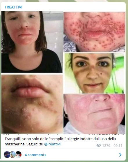Non credo sia necessario aggiungere altro. Chi condivide immagini come quelle qui sopra per spaventarvi sull’uso delle mascherine è un avvelenatore di pozzi. Stategli alla larga, sono soggetti tossici, che non meritano la vostra amicizia, virtuale o meno che sia.