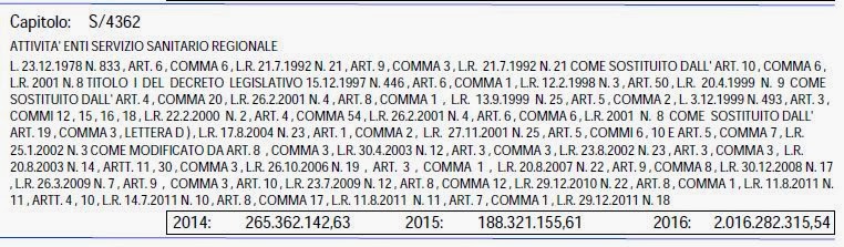Facendo i calcoli tra 2014/15 previsto nel 2013 e 2015/16 previsti oggi mi sembra ci siano dei milioni in più, non in meno, se la matematica non è un opinione 188+2016= 2204 mentre nelle previsioni precedenti si parlava di -122+1820= 1698, quindi le spese (programmate) previste per la sanità nel prossimo biennio sono maggiori di quelle previste l’anno scorso, non minori.