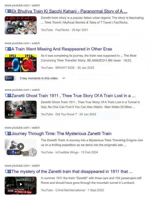 Ancor peggio, se chiedete a Google di trovare Zanetti train time traveling story, l’IA di Chrome ci risponde così: