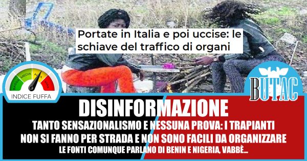 Peccato che se cerco organ harvest o organ traffic sui siti dell’FBI gli unici articoli che ne parlano fanno riferimento a traffici d’organi illeciti sì, ma partendo da pazienti morti e conservati in obitori e onoranze funebri. Nessun cenno a traffico d’organi con base in Italia, in nessuna delle tante pagine esplicative sul traffico internazionale di esseri umani. Su BUTAC avevamo già parlato di traffico d’organi, con un bell’articolo della nostra Thunderstruck che cercava di fare chiarezza su alcuni articoli sul tema.