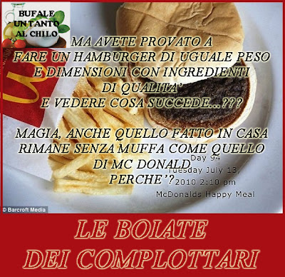 Circola da lungo tempo la bufala sugli hamburger mummia, fantomatici prodotti transgenici che non ammuffiscono mai. In questi giorni ha ripreso a girare e quindi sorge spontaneo il dubbio che alcuni di voi non sappiano come funziona!