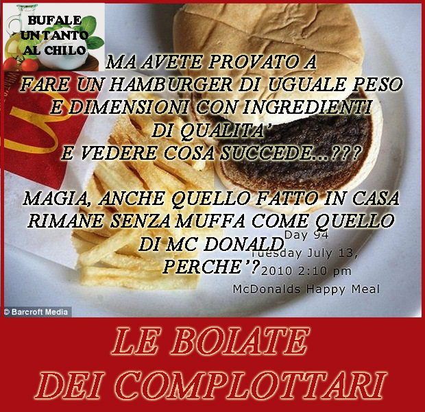 Circola da lungo tempo la bufala sugli hamburger mummia, fantomatici prodotti transgenici che non ammuffiscono mai. In questi giorni ha ripreso a girare e quindi sorge spontaneo il dubbio che alcuni di voi non sappiano come funziona!