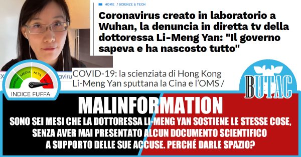 La dottoressa Li-Meng Yan è da aprile 2020 che racconta le stesse identiche cose, nulla di nuovo sotto al sole, se non che ora le ha dette in un video in un talk show di nessuna affidabilità, molto simile a quelli condotti da svariati soggetti nel nostro Paese dove si dà spazio a qualsivoglia folle teoria, basta che faccia audience, guarda caso ad aprile la dottoressa aveva parlato a Fox News. Una scienziata che voglia davvero fare dichiarazioni di questo genere, una vera scienziata, non va in una trasmissione di gossip e curiosità dell’ora di pranzo. Trasmissione che ha probabilmente pagato per il suo intervento. Una vera scienziata che voglia fare una seria denuncia la fa pubblicando un paper scientifico dove dimostra quanto sostiene. Basta un po’ di spirito critico per rendersene conto. Spirito critico che manca alla redazione di Libero Quotidiano, come ai giornalisti di Fox News, che dopo un’iniziale “scoop” hanno smesso completamente di parlare della dottoressa.