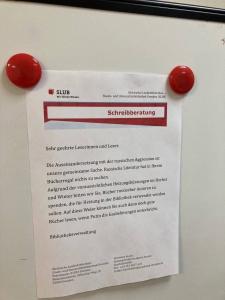 Quasi tutti riportano la foto di un foglio che sarebbe apparso nelle bacheche della biblioteca SLUB, ovvero la Sächsische Landesbibliothek – Staats- und Universitätsbibliothek Dresden, la biblioteca dell’università di Dresda.