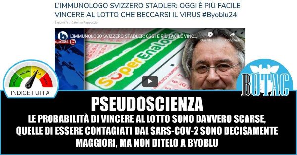 Un caso circa ogni 260mila abitanti. Direi che il paragone sia errato di svariate grandezze. Ma poco conta, ByoBlu fa opinione, non informazione. E in questo caso ha scelto, non è chiaro perché, di riportare l’opinione di un virologo settantenne svizzero, noto ai più come presenzialista televisivo (con cui probabilmente andrei d’accordo) che come medico/scienziato.