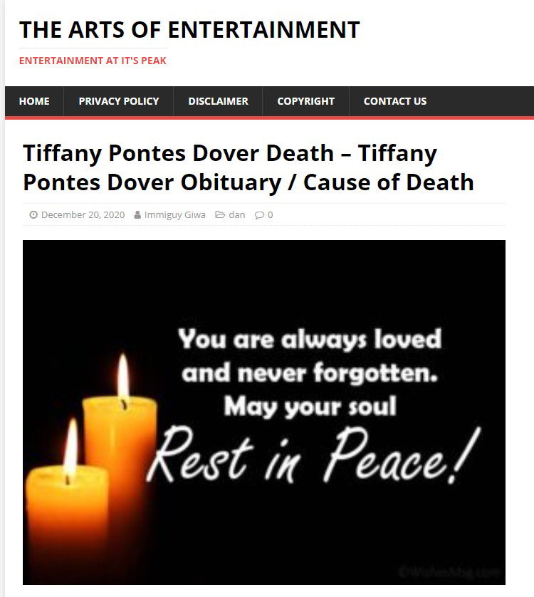 The art of entertainement – Tiffany Pontes Dover Death – Obituary – Cause of Death