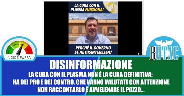 Che è poi il sunto di quanto dice nel video. Si tratta di avvelenamento del pozzo: dare a intendere cose senza essersi minimamente informato sui fatti, riprendendo post visti circolare sui social. Nulla di più. Non c’è nessun disinteresse da parte del governo. La plasmaferesi si fa, si conosce da anni, non è “la cura” ma una possibile cura che è stata testata con tutte le dovute precauzioni del caso. Dare a intendere che ci sia disinteresse, che ci siano possibili interessi economici a nasconderlo è voler cercare la facile indignazione del pubblico. Non è informare in maniera corretta e circostanziata, su quella che è una notizia che ha comunque possibili effetti sui comportamenti di chi la legge.