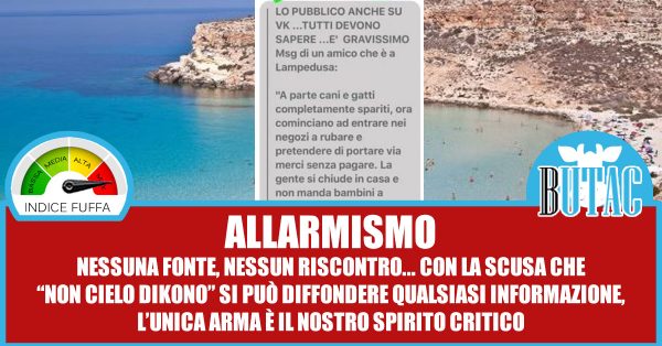 Non c’è autore, non c’è una fonte, nulla di nulla, solo uno screenshot (o un post) che da ormai alcune settimane circola in rete. Chi è convinto che quanto riportato sia la verità lo ricondivide senza porsi alcuna domanda. Basterebbe chiedere a chi sull’isola ci vive e lavora per verificare, basta anche solo un giro sui social cercando “Lampedusa”, non ci vuole molto.