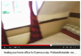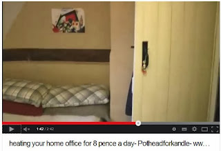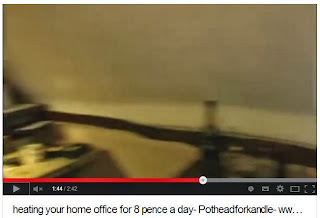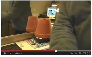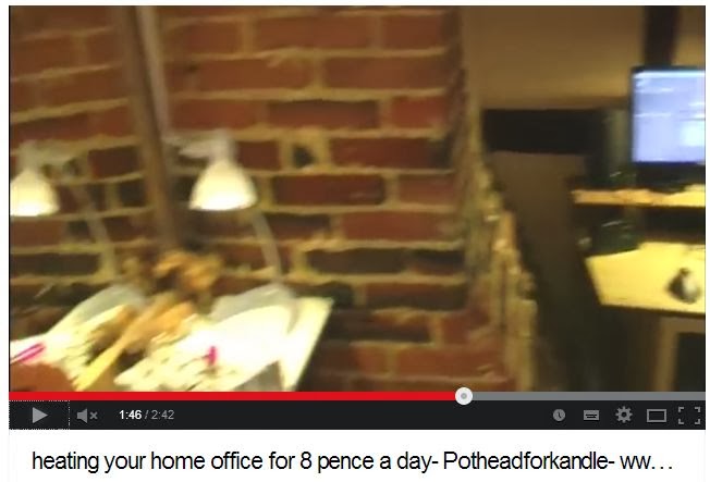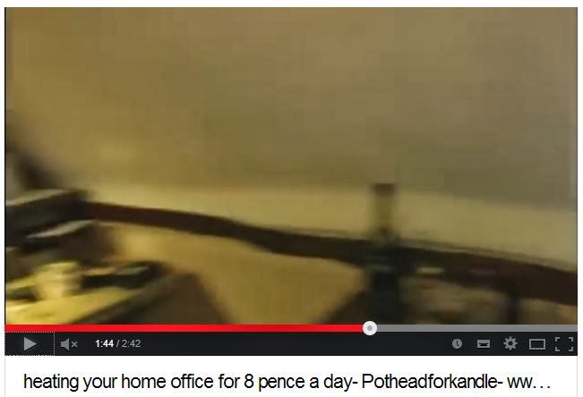 Il compassato signore ci racconta come montare e far funzionare il suo scaldino, bastano 4 candele da the (quelle di ikea da 3 euro circa a scatola da 100) due vasi che si possano contenere fra loro e un vassoietto coi bordi rialzati e resistente al calore su cui poggiare il tutto, si appoggiano le candele sul vassoio le si accende, le si copre col vaso più piccolo si chiude il foro superiore e poi si ricopre il tutto col secondo vaso. Le candele fanno si che il vaso coperto si scaldi molto, e dalle aperture del secondo vaso il calore si irradierà nella stanza…peccato che nel video il signore stesso spieghi più volte che la sua è una stanza MOLTO piccola…e velocemente ce la mostra…