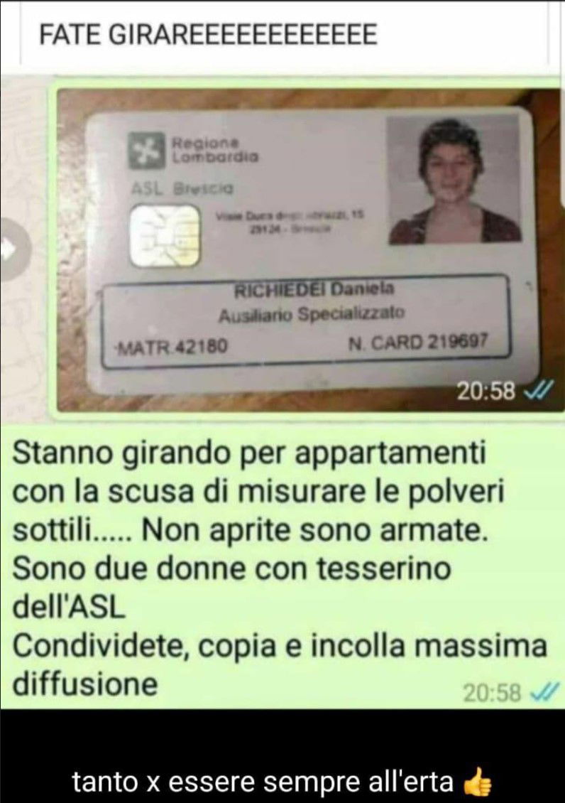 L’allarme è falso, e sarebbe finita qui. Ma perché viene fatto circolare? Come cerchiamo di spiegare da anni, questo tipo di bufale innocue serve a identificare chi è più suggestionabile di altri. Se condividi questo allarme è evidente che non verifichi quanto ti viene inviato e che quindi sei propenso a condividere la qualunque. Che si tratti di bufale innocue come questa, o che si tratti di cose più complesse, magari legate al mondo della politica se non vere e proprie truffe.