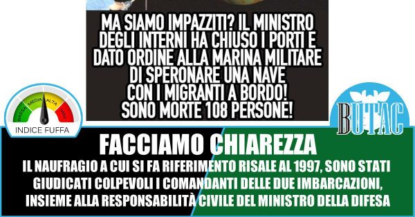 Cosa sia successo esattamente quel venerdì non è chiarissimo, tra omissioni, registrazioni mancanti e altro il giudice ha dovuto basare la sentenza più sulle testimonianze che su prove materiali. Ma sostenere che sia partito un ordine per speronare la nave albanese è manipolare la realtà. Ad oggi non esiste una singola prova che sia partito, dal Governo, l’ordine di speronare la nave. Sostenerlo come dato di fatto è manipolare la storia, che a farlo sia qualcuno che sembrava interessato a fare demistificazione e fact-checking (come qualcuno ricorderà Nicolas Micheletti ha tentato anche di fare l’autore su BUTAC) per me è grave.