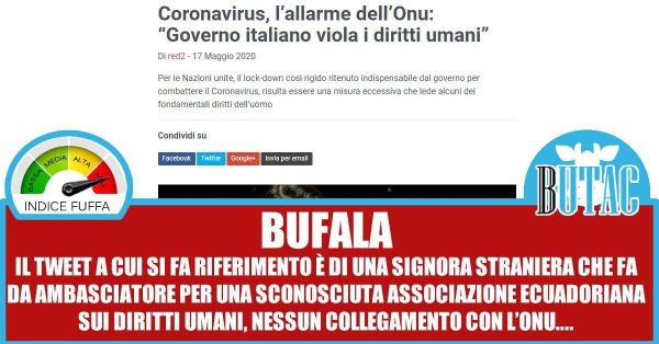 L’ONU lancia l’allarme sulla situazione in Italia: il lock-down così rigido ritenuto indispensabile dal governo per combattere il Coronavirus, risulta essere una misura eccessiva che lede alcuni dei fondamentali diritti dell’uomo. L’ambasciatrice per i diritti umani dell’ONU, Alicia Erazo, ha scritto su Twitter: “SOS Signor Presidente Trump: gravi violazioni dei diritti umani per il popolo italiano con la scusa del coronavirus da parte del governo. Alicia Erazo, Alto Commissario internazionale per i diritti umani del Cidhu, per l’Europa, l’Asia e l’Oceania”.