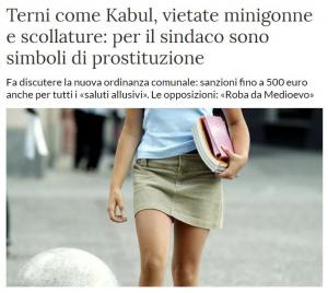 Terni come Kabul, vietate minigonne e scollature: per il sindaco sono simboli di prostituzione