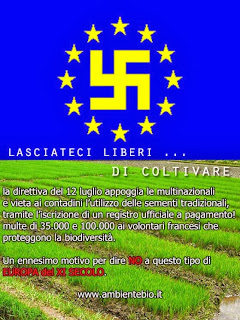 Pare sia al vaglio una nuova normativa che veglierà sulla circolazione delle sementi in Europa, vietando di fatto la possibilità di coltivare, se non usando le sementi speciali (ovviamente OGM con microchip e innesti) create e vendute solo dalle stesse multinazionali che producono il bario dei nostri cieli.