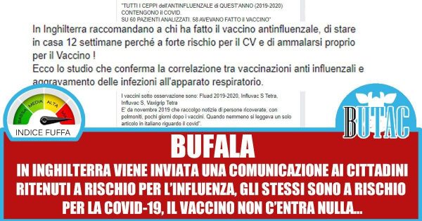 In Inghilterra raccomandano a chi ha fatto il vaccino antinfluenzale, di stare in casa 12 settimane perché a forte rischio per il CV e di ammalarsi proprio per il Vaccino !