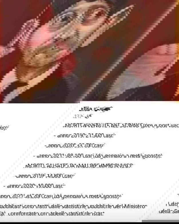i responsabili dell’Istituto nazionale di statistica hanno smentito i dati contenuti nel tweet, spiegando che «gli ultimi dati ufficiali sulle cause di morte rilasciati da Istat si riferiscono all’anno 2018» e che ogni altra proiezione successiva a quella data non può dunque essere stata prodotta da Istat…