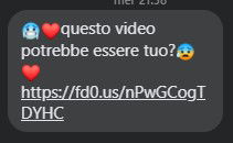 Mentre nel 2016 si faceva leva sulla paura e il messaggio terminava con un “vergognati”, dando a chi lo riceveva l’impressione che fosse un video in qualche modo scandaloso o di cui vergognarsi (e quindi spingendo sull’urgenza di cliccare e verificare), oggi sono spuntati cuoricini ed emoticon, ma la sostanza non cambia. Se cliccate sul link rischiate di infettare il dispositivo che state usando per navigare in rete che in automatico rimanderà lo stesso messaggio (o simile) a tutti i vostri contatti senza che voi ve ne accorgiate.