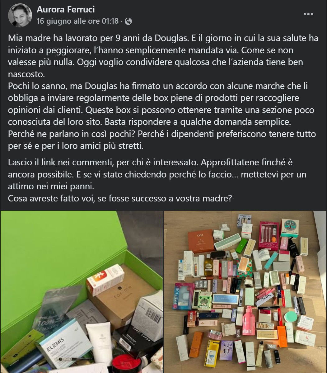 Mia madre ha lavorato per 9 anni da Douglas. E il giorno in cui la sua salute ha iniziato a peggiorare, l’hanno semplicemente mandata via. Come se non valesse più nulla. Oggi voglio condividere qualcosa che l’azienda tiene ben nascosto.