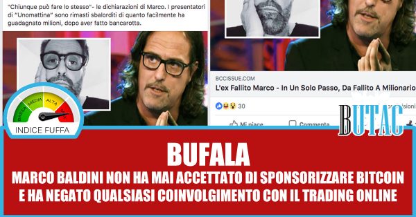 Spero davvero che abbiate sviluppato anticorpi sufficienti a comprendere che si tratta di una truffa legata appunto al trading online. Baldini non ha guadagnato milioni di euro con i BitCoin, anzi ci ha tenuto a rispondere a questo genere di annunci con un lungo post sulla sua pagina Facebook:
