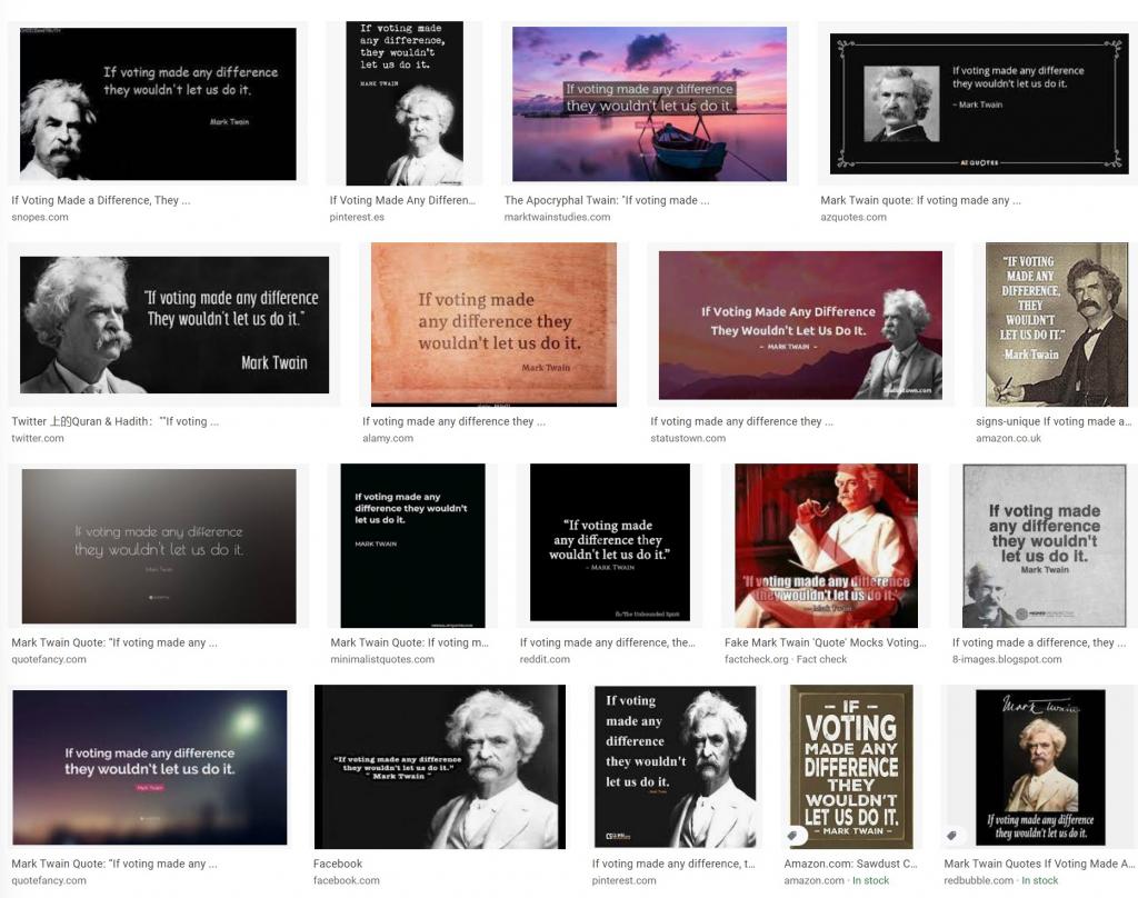 La frase è un falso attribuito a Twain con l’avvento dei social network, come già successo in precedenza per altri aforismi simili. Purtroppo la facilità di condivisione dei social network fa sì che tanti, fidandosi, rilancino troppo spesso contenuti non verificati, provocando quella valanga di fuffa che oggi chiamiamo information disorder.