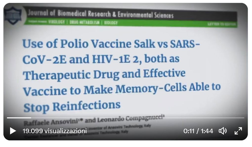 Nel servizio si sostiene che Ansovini abbia “pubblicato diversi lavori su riviste internazionali”: sarà, ma su Pubmed esistono solo due testi a nome Ansovini R, uno nel 1995 e uno nel 1998. Entrambi sono lavori che riguardano l’AIDS. Il primo lavoro è stato pubblicato solo in italiano sulla rivista Recenti Progressi in Medicina, unico autore lo stesso Ansovini. Il secondo testo, sempre sull’AIDS, porta la firma di Ansovini e di altri ricercatori. Per curiosità ho cercato alcuni degli altri firmatari, tutti eccetto Ansovini hanno svariate altre pubblicazioni, purtroppo non sempre su testate affidabili, a volte in compagnia di soggetti che abbiamo già incontrato sulle nostre pagine.