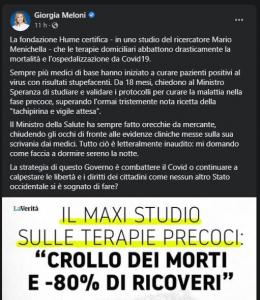 Giorgia Meloni e le cure domiciliari precoci (ancora)