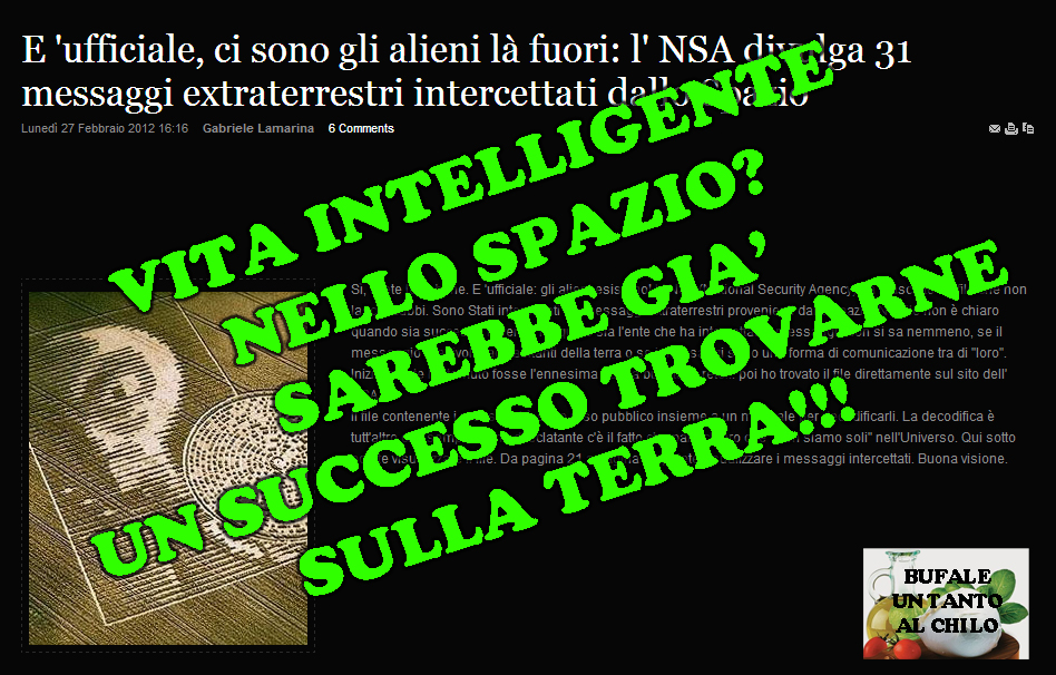È assolutamente fantastico vedere come i creduloni possano cadere regolarmente in certe trappole, soprattutto quelle preparate ad arte proprio per loro! Altro che vita intelligente nello spazio, qui l’intelligenza manca sulla terra…