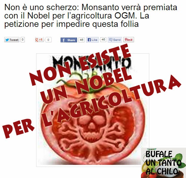 Leggendo in realtà gli articoli postati nel testo viene spiegato che non è il Nobel, ma usando il termine World Food Prize si vuol portare a credere che sia una cosa internazionale come assegnazione dei premi e che sia valutato anche il parere di giurie indipendenti, mentre in realtà è un premio di una fondazione privata finanziata dagli stessi che i blogger complottari vogliono combattere…che senso ha pubblicare l’articolo?
