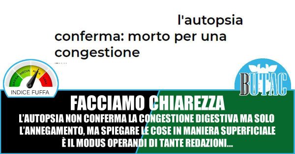 La prima domanda che mi viene da fare è: ma perché, se non è affatto vero che l’autopsia ha confermato la congestione, dovete inserirla nel titolo? La risposta probabilmente è che scrivendo che l’autopsia ha confermato che il bimbo non ha subito traumi da spinta o altro, e che pertanto è stata confermata come unica causa della morte la sindrome da annegamento, la notizia avrebbe avuto meno seguito.