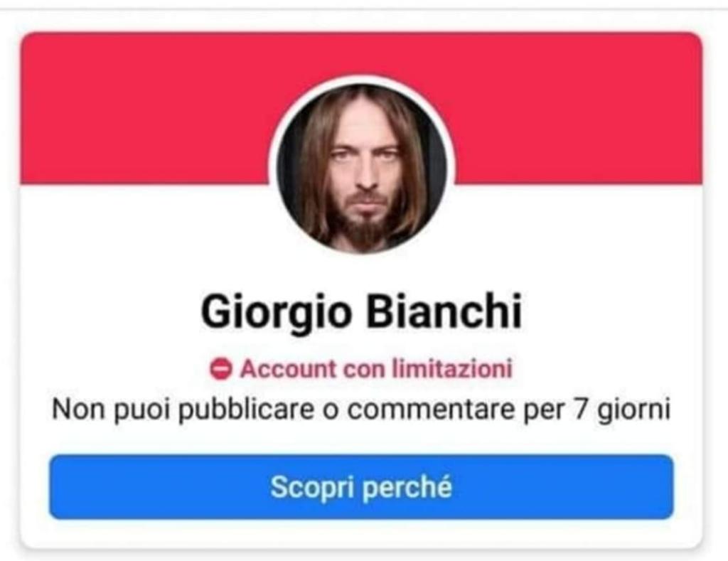 Ci avete segnalato un post pubblicato su alcune bacheche collegate in qualche maniera a questo profilo che vedo oggi per la prima volta, Giorgio Bianchi, fotografo. Circolano post che mostrano il ban come da immagine qui sotto: