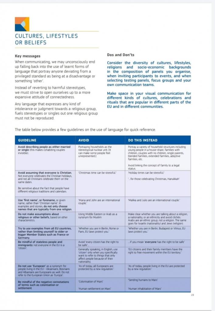 In un documento per circolazione interna di cui Il Giornale è entrato in possesso in esclusiva intitolato #UnionOfEquality. European Commission Guidelines for Inclusive Communication, vengono indicati i criteri da adottare per i dipendenti della Commissione nella comunicazione esterna ed interna.