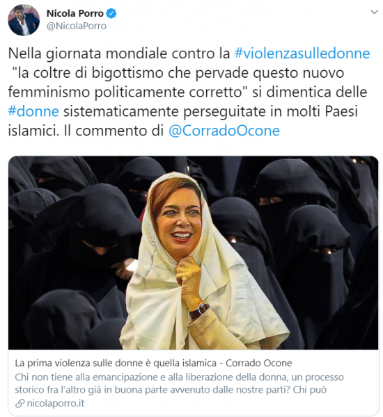 I social media manager che gestiscono l’account Twitter di Nicola Porro hanno pubblicato il 25 novembre questo tweet: