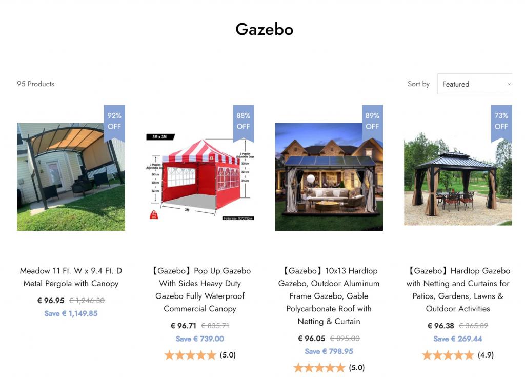 A scanso di equivoci: non do mai la mia mail ai siti truffa, uso uno dei mille servizi di mail temporanee che si disabilitano dopo cinque o dieci minuti. Quasi tutto quello che vendono sul sito costa meno di 100 euro, dal gazebo per il giardino: