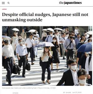 In Giappone la mascherina, anche all’aperto, era (ed è ancora) usata spesso, come potete vedere da quest’articolo di giugno 2022: