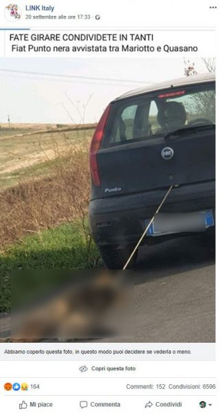 Oggi le cose mi sono state rese davvero semplici, in tanti ci avevate segnalato un post che mostrava una foto con un cane che sembrava trascinato da un automobile.