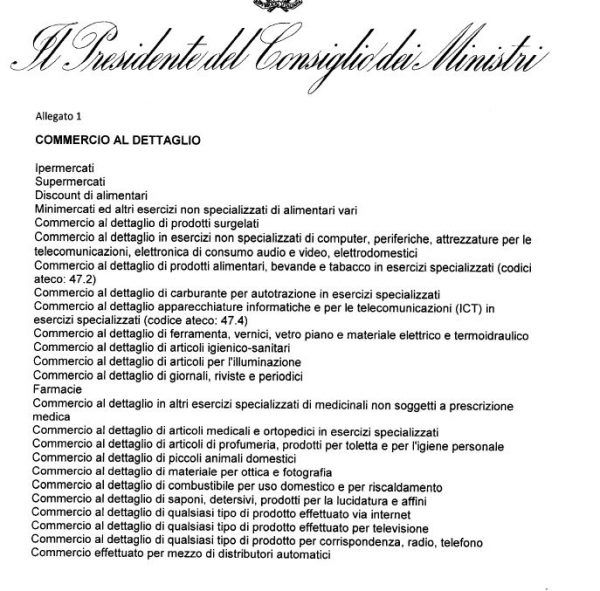 Questo è l’elenco delle attività che possono rimanere aperte: