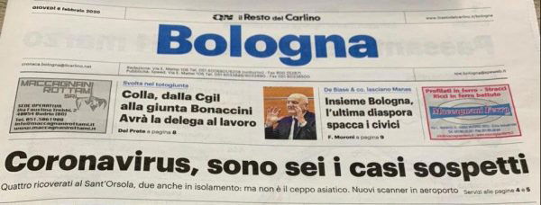 In prima pagina: CoronaVirus – sono sei i casi sospetti