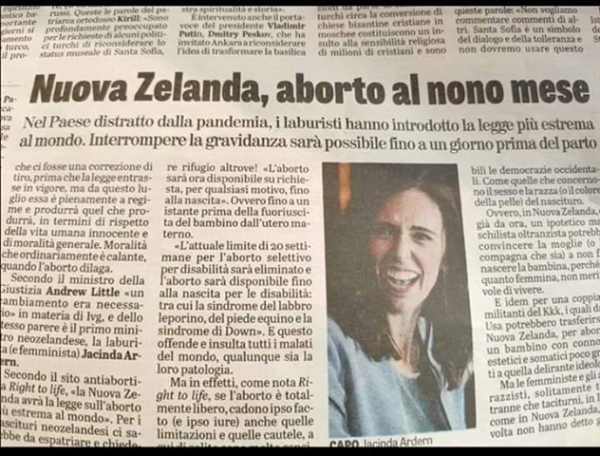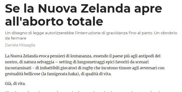 Se la Nuova Zelanda apre all’aborto totale -Panorama – firma Daniele Missaglia – 11 luglio 2020