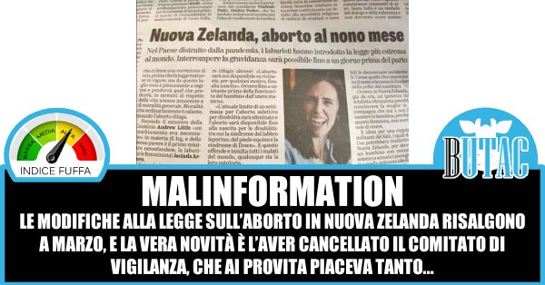 Io sono andato a cercare queste modifiche alla legge sull’aborto. Sull’Abortion Legislation Act 2020 esiste pure una bella pagina su Wiki. L’atto a cui si fa riferimento è stato approvato a marzo 2020, è già in vigore in Nuova Zelanda, e prevede modifiche alle norme che erano in vigore fin dal 1977. Sulla wiki in inglese è possibile trovarne un sunto benfatto. Altrimenti non vi resta che leggervi tutto l’atto e quello originale del 1977 per capire come stiano le cose. Dubito che i giornalisti nostrani abbiano speso quel tempo. Ma qui si fa fact-checking, quindi quel tempo lo impegniamo volentieri.