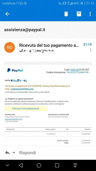 Se, presi dal panico di un addebito di 125,08 euro per un acquisto che non abbiamo fatto, ci viene da cliccare su “Informaci Immediatamente” veniamo rimandati a un dominio completamente diverso (ma che scimmiotta alla perfezione PayPal), dove, ovviamente, ci vengono chiesti i nostri dati d’accesso. Dati che però stiamo inserendo su ppaayll. com e non sul nostro normale sito di PayPal. Dati che il truffatore userà per svuotarci il conto se siamo stati così poco attenti da non aver previsto più livelli di controllo. Facciamo attenzione.