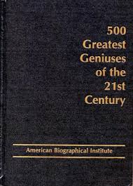 Oggi facciamo in fretta, come vi ho detto il titolo del volume è “i 500 più grandi geni del 21esimo secolo”, edito e redatto dall’American Biographical Institute, nome altisonante. Nome che sembra suggerire di essere un ente ufficiale di qualche genere.