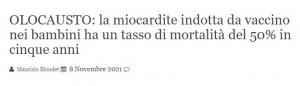 OLOCAUSTO: la miocardite indotta da vaccino nei bambini ha un tasso di mortalità del 50% in cinque anni