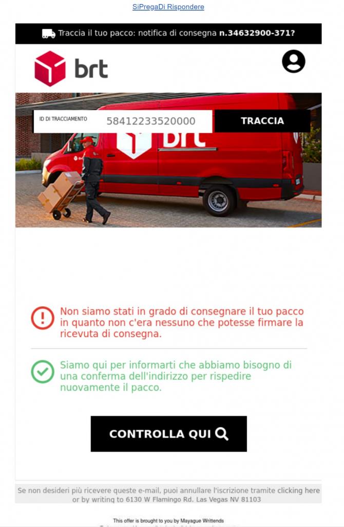 - Siamo qui per informarti che abbiamo bisogno di una conferma per rispedire nuovamente il pacco