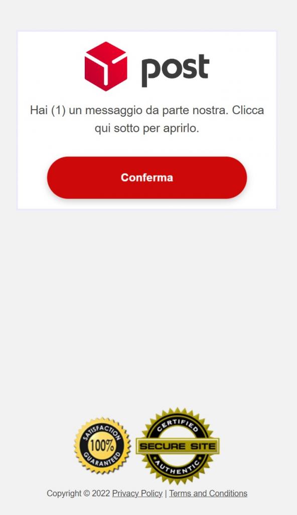 Poi c’è il solito pulsantone con link da cliccare per andare a dare la conferma richiesta. Cliccandolo finiamo su una pagina che riporta quanto segue: