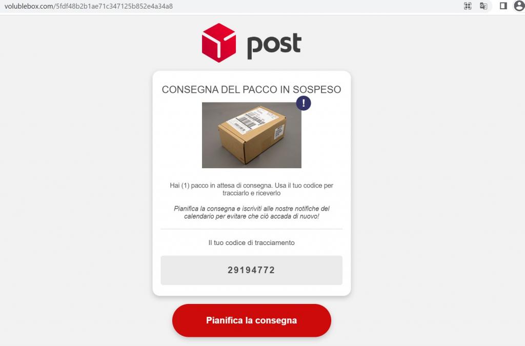 Il codice di tracciamento curiosamente è diverso da quello che era nella mail. Se clicchiamo su Pianifica la consegna: