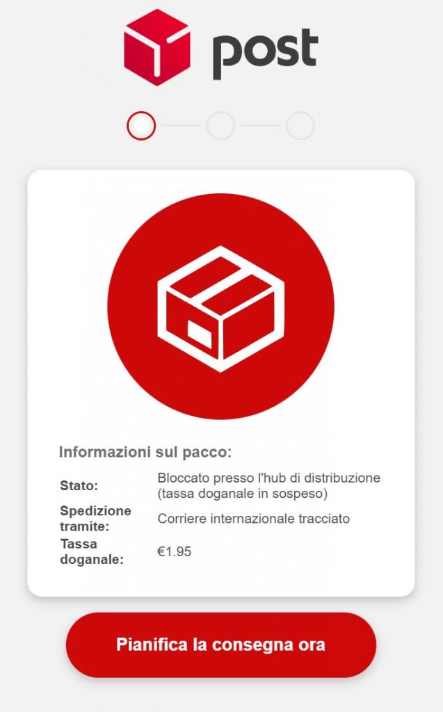 Ed ecco che un po’ alla volta scopriamo l’inghippo: c’è da pagare, una somma minuscola, che non ci preoccupi più di tanto. Curioso che il pacco avessero tentato di consegnarlo e poi magicamente risulti bloccato presso l’hub.