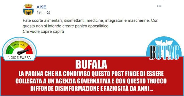 Classico post allarmistico che chiunque può aver scritto, ma farlo sotto al nome AISE è particolarmente grave. AISE infatti sta per Agenzia Informazione e Sicurezza Esterna. Si tratta di un’agenzia reale, che fa capo al Consiglio dei Ministri. La pagina su Facebook però è un falso, che da sei anni diffonde link e post senza alcun controllo. Per farvi capire perché è grave esistano pagine simili vi riporto la descrizione di AISE dal sito governativo ufficiale: