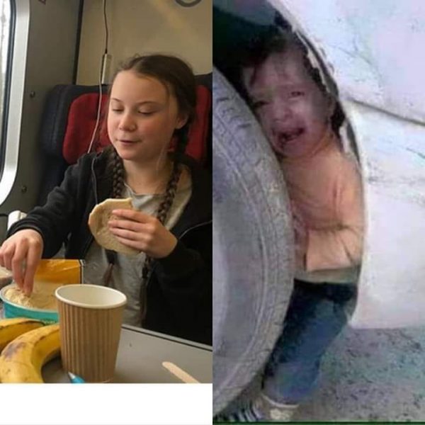 In circa due settimane il post ha ricevuto quasi 30mila condivisioni. Credo ci siano delle precisazioni da fare, quella a sinistra è Greta Thunberg, mentre mangia in treno diretta verso Davos, un viaggio di 26 ore in treno. Di quella foto di Greta vi avevo già raccontato a suo tempo. Sicuramente Greta è una bimba nata fortunata, i suoi genitori sono benestanti e conosciuti nel loro Paese. Ma l’altra? L’altra foto non mostra affatto quanto raccontato nel post. Circola almeno dal 2012, non si ha idea di chi sia la bimba, all’epoca veniva usata quella foto per spiegare come sia sempre utile, prima di mettersi in marcia, fare un giro attorno al proprio veicolo, per verificare che non ci siano problemi di alcun tipo.