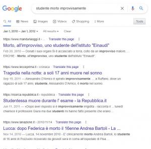 A e quando vi diranno che non è credibile mostrategli Google con la chiave di ricerca “studente morto all’improvviso”, anche lì (purtroppo) i risultati sono tanti: