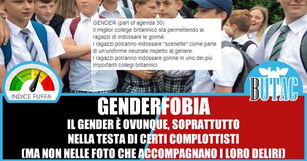 L’autore del post (evitiamo di citare il suo pseudonimo per privacy, ma vi assicuriamo che si tratta di un complottista della più bell’acqua) traduce un po’ alla bersagliera un articolo del Telegraph, in cui il preside della prestigiosa Uppingham School di Rutland, Dr. Richard Maloney, parla della sua decisione di permettere agli alunni di indossare l’uniforme scolastica del sesso opposto. “Vorrei che ogni alunno potesse venire da me,” dice Maloney, “e sentirsi libero di dire: questo è ciò che sono, questo è il modo in cui voglio esprimermi. Voglio indossare questi vestiti – e sarei felice di permetterglielo”.